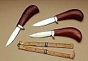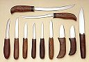 I make a wide range of utility knives for kitchen, backpacking and everyday routine use. All knife blades are made of hand forged modern tool steels such as ATS-34, a high carbon stainless steel. Clicking on a small photo below will link to a larger view of the same image.Photographs by Kerry Richardson |